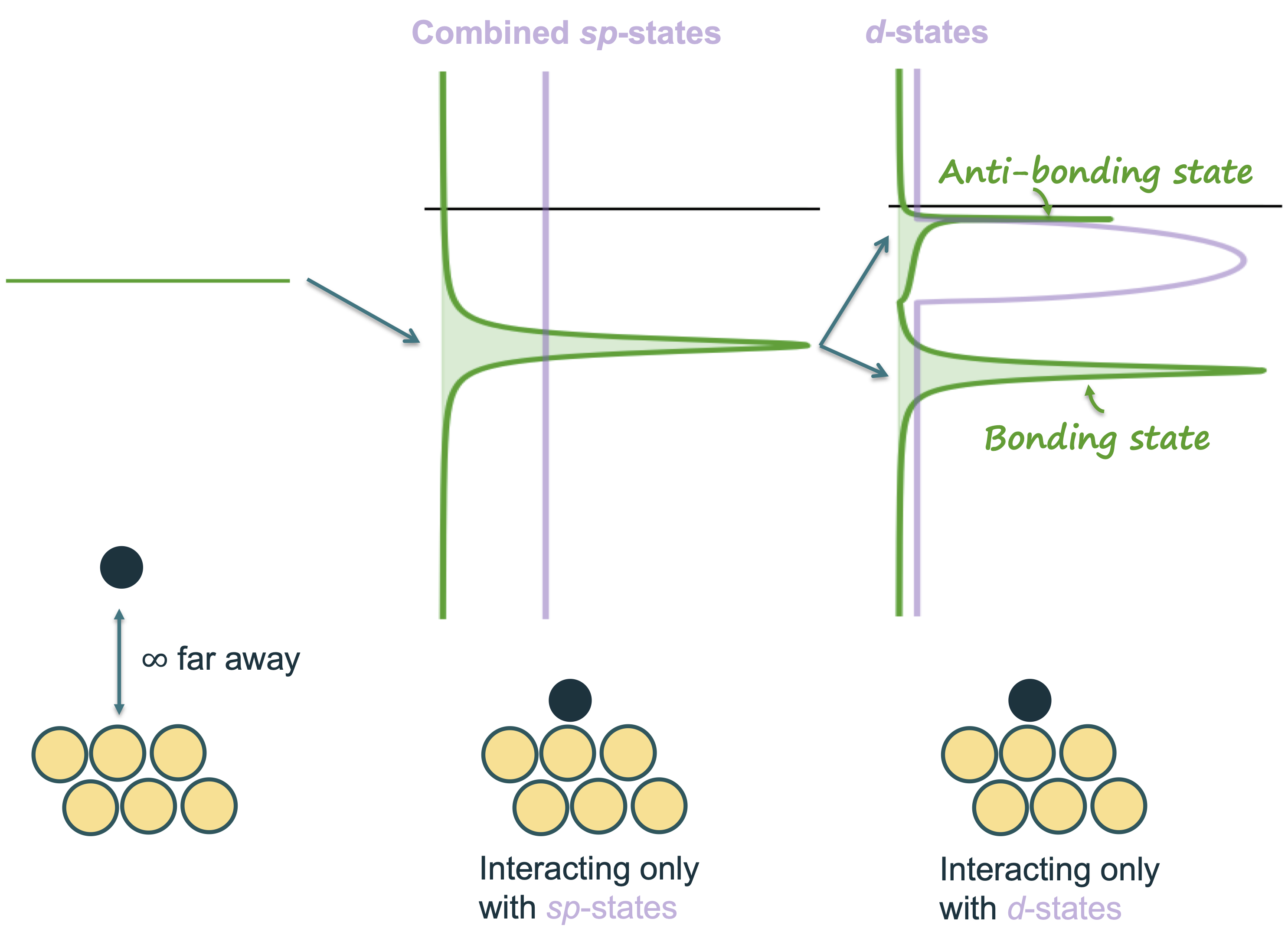 For example, metals such as gold and silver bind molecules weakly because their d-band lies far below the Fermi level, which makes them less reactive. On the other hand, some metals bind too strongly, which can poison the surface. By understanding and predicting these interactions using quantum mechanical simulations like density functional theory (DFT), we can explain trends in catalytic activity across many different materials.