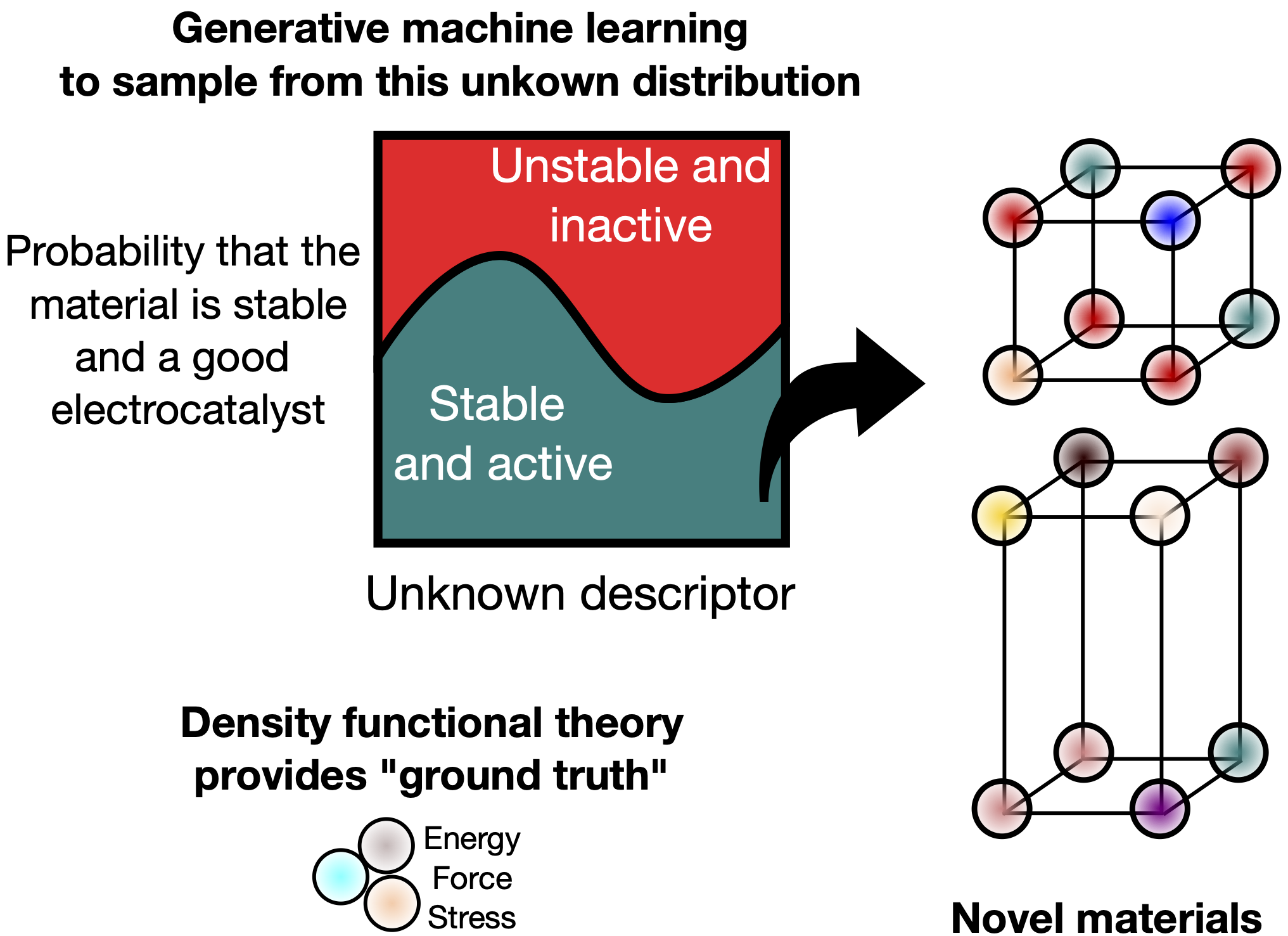 In particular, we focus on developing generative models which create entirely new atomic structures and compare them with traditional search methods. This approach can speed up the discovery of next-generation materials for hydrogen generation technologies.